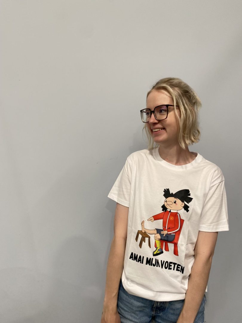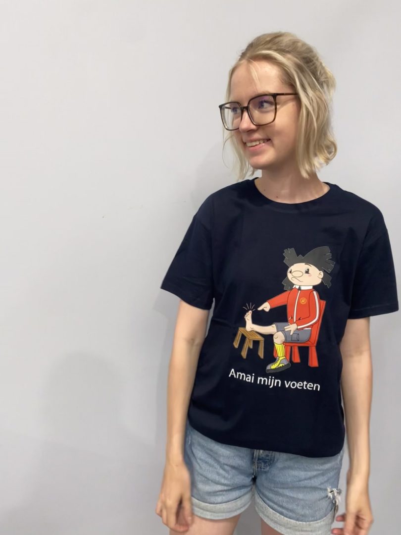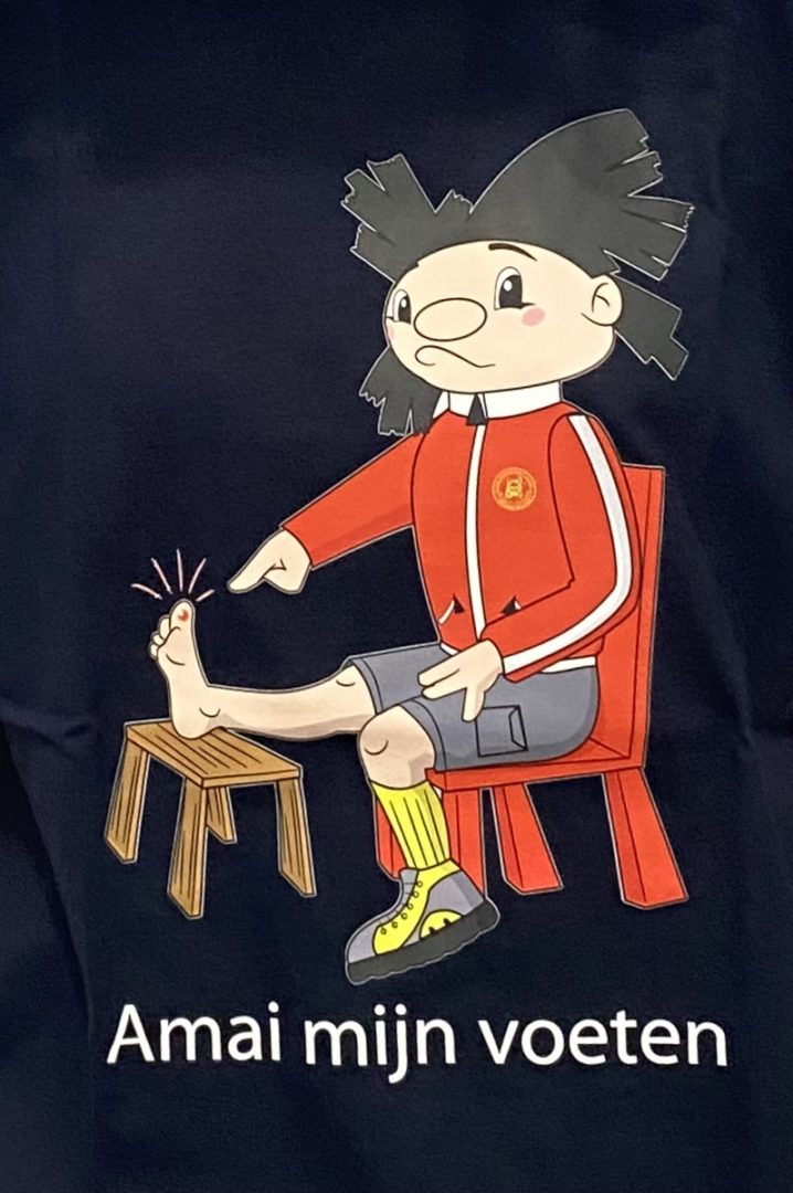 Onze mascotte Kadeeke met een blaar “Amai mijn voeten”.