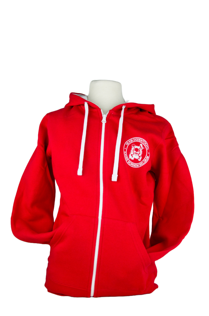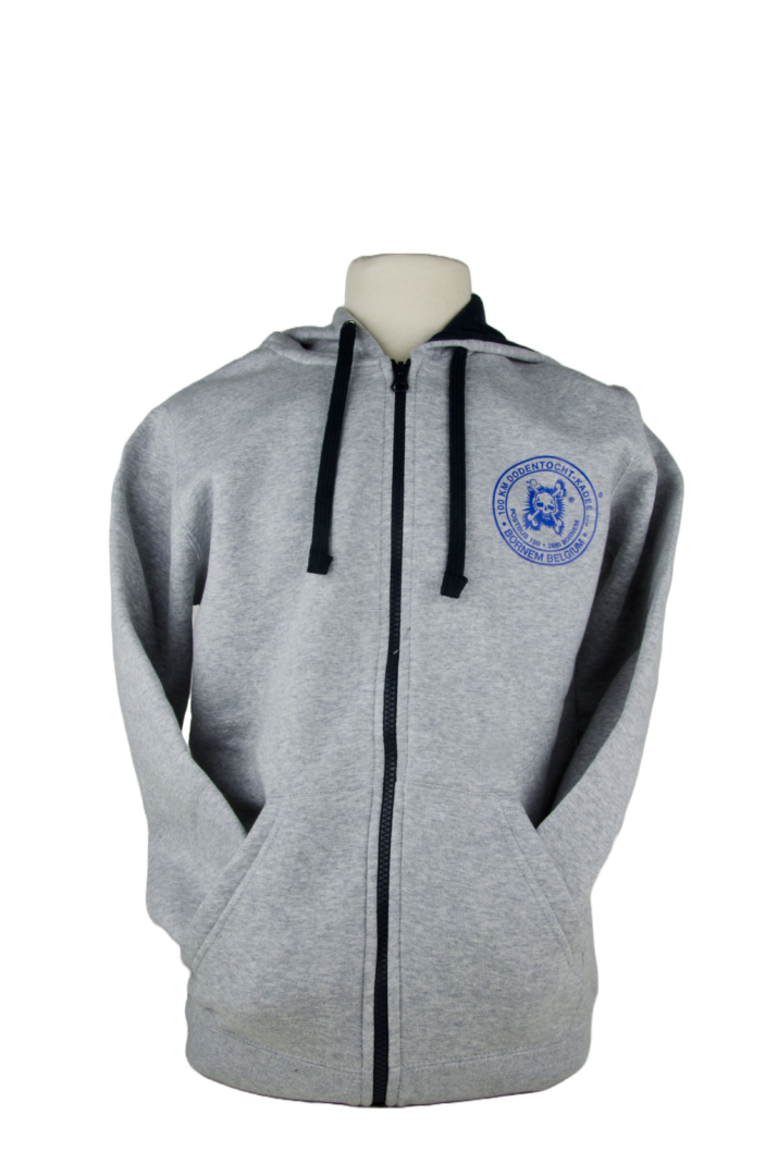 Sweater met rits en kap in 80% katoen en 20% polyester.